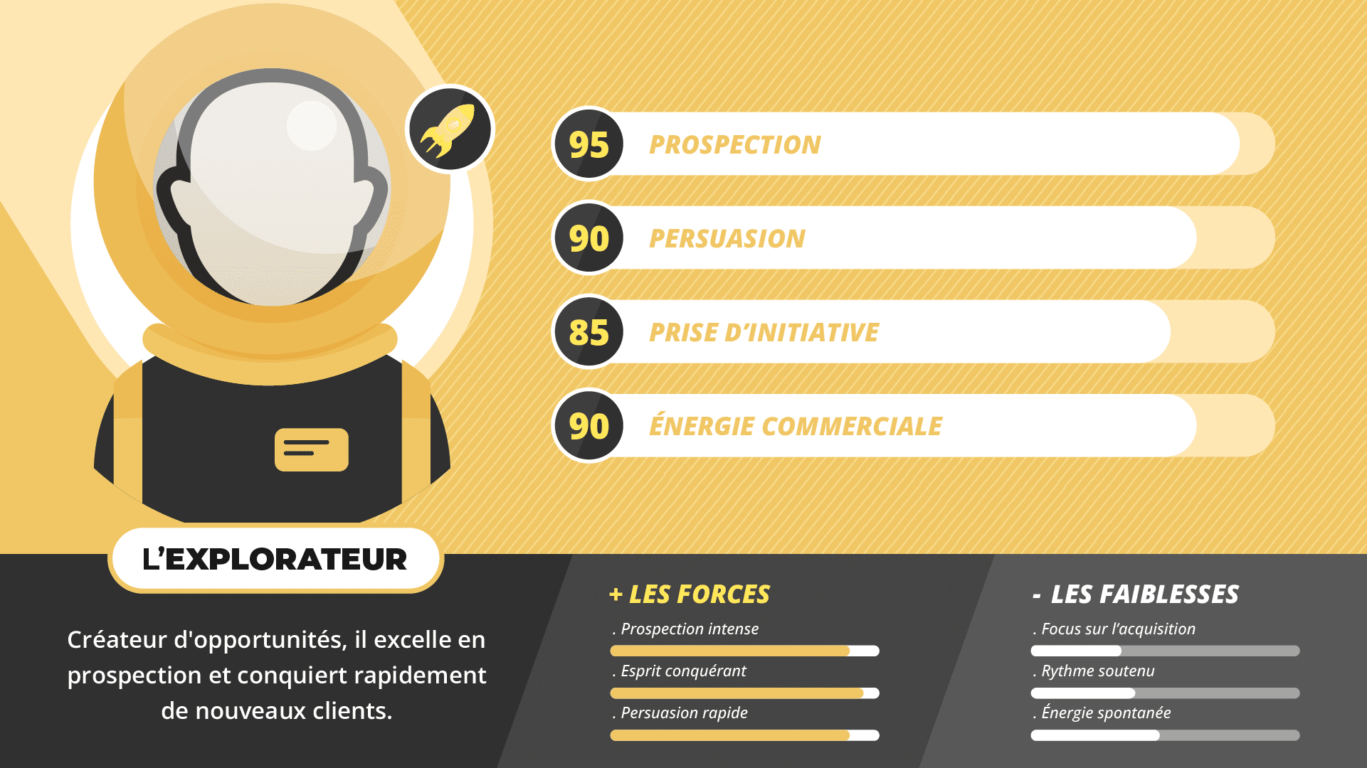 Discover in detail his strengths, his weaknesses, and how to optimize his potential to maximize his commercial impact.